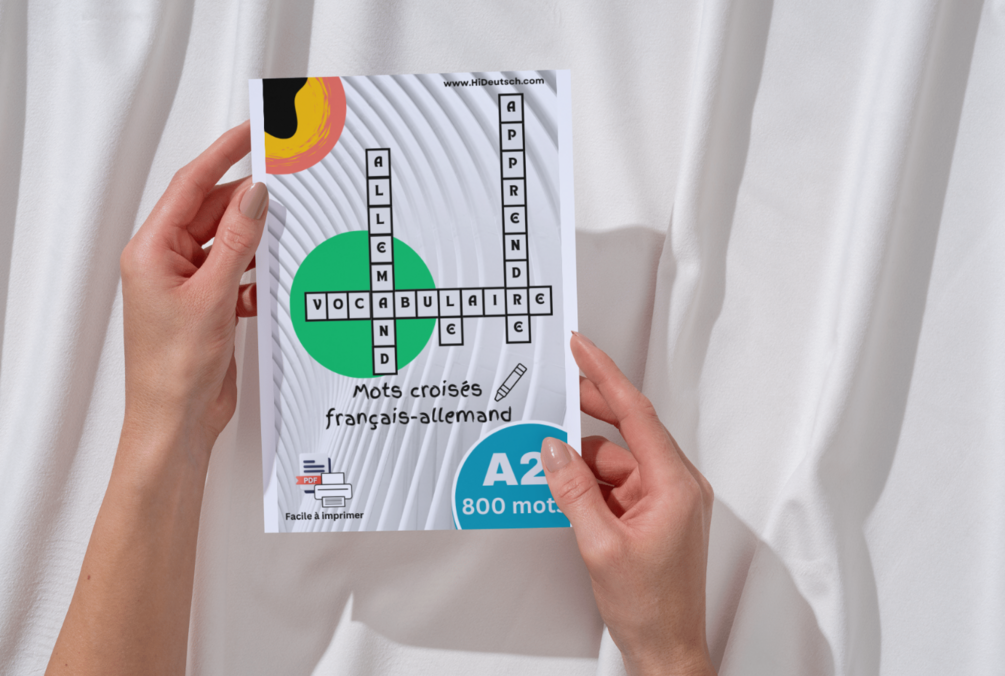 Un e-book imprimable de mots croisés français-allemand, niveau A2, pour apprendre et réviser 800 mots.